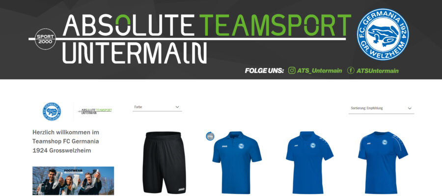 Hallo Fans, besucht unseren neuen Onlineshop und holt Euch Euer Vereinsoutfit in Germania-Blau!Den Shop findet Ihr unter der Rubrik „ONLINE-SHOP“ in der Menüleiste unserer Homepage oder unter diesem Link ->