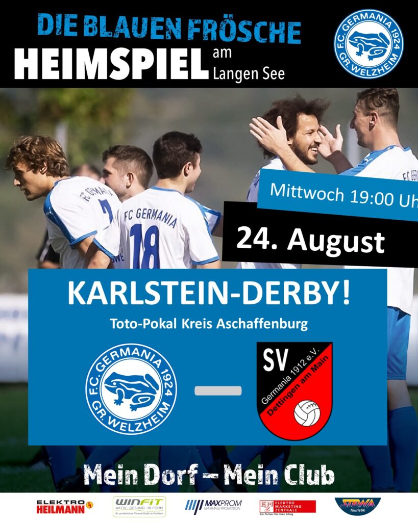 Nach dem Derby im Halbfinale des Hahnenkammturniers in Dettingen (das wir übrigens im Elfmeterschiessen gewonnen haben!!!), gibt es jetzt im Rahmen des Toto-Pokals die zweite Auflage des Karlstein-Derby’s in diesem Jahr.