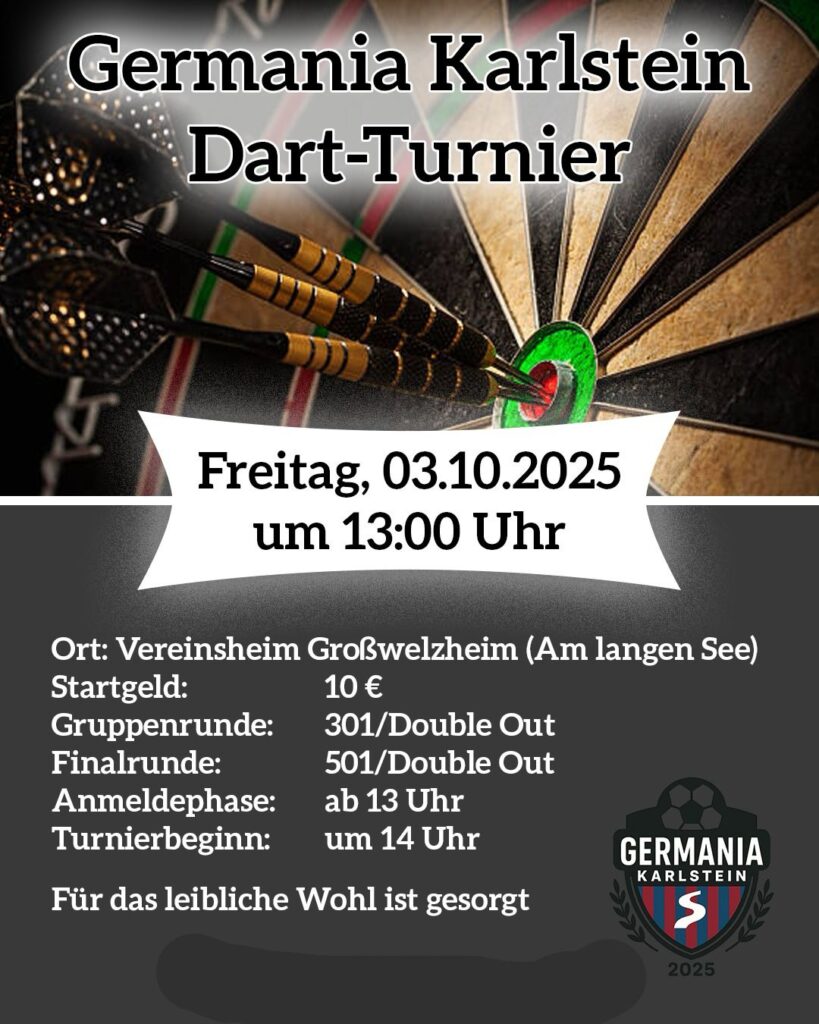 am Freitag, 03.10.2025 startet um 13:00 Uhr wieder unser Steeldartturnier im Vereinsheim am Langen See.