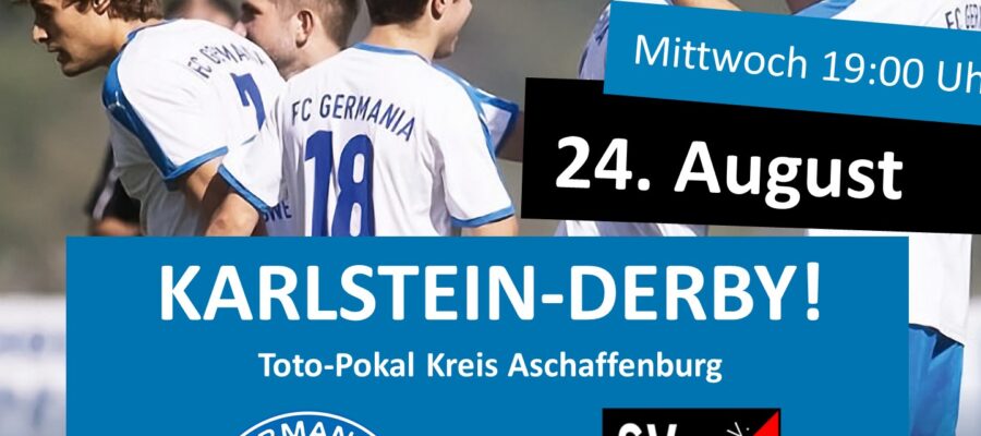 Dienstag, Maria Himmelfahrt, 18:30 Uhr! Anpfiff bei unserem Ortsnachbarn und Jugend-Partner der SG Karlstein, dem SV Germania Dettingen zum dritten Karlstein-Pokalderby in Folge. Die Gastgeber gingen als eindeutiger Favorit ins