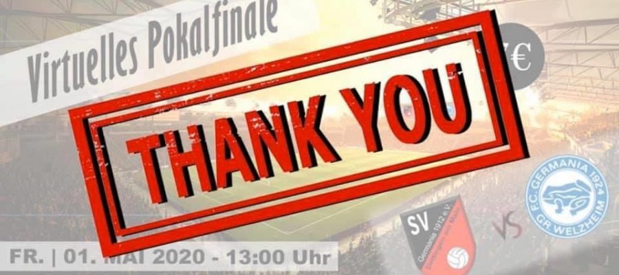 Vielen herzlichen Dank ? Die Karlsteiner Fußballvereine, Germania Dettingen und wir, bedanken uns recht herzlich bei allen die sich ein Ticket für unser virtuelles Pokalfinale ergattert hatten!Die Partie endete 1:0 für
